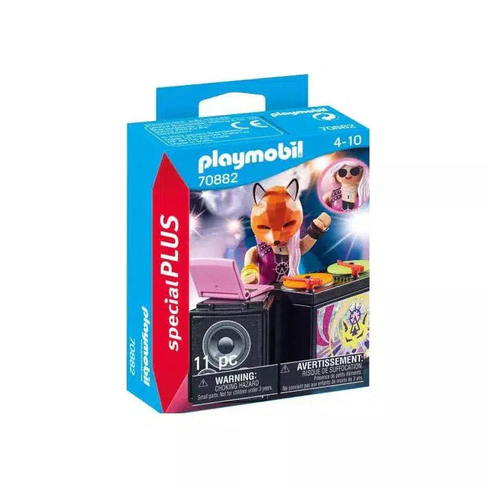 Everyone comes out to dance the night away when the DJ with Turntables sets the playlist. Play with this set on its own or combine it with any other PLAYMOBIL set. Set includes one figure, fox mask, DJ turntables, speaker, laptop, and other accessories.