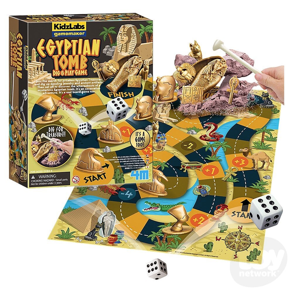 Race to the finish to dig for treasure with the KidzLabs - Egyptian Tomb Dig & Play Game. Includes plaster block and digging tools to search for the ancient artifacts. Great hands-on project and game.