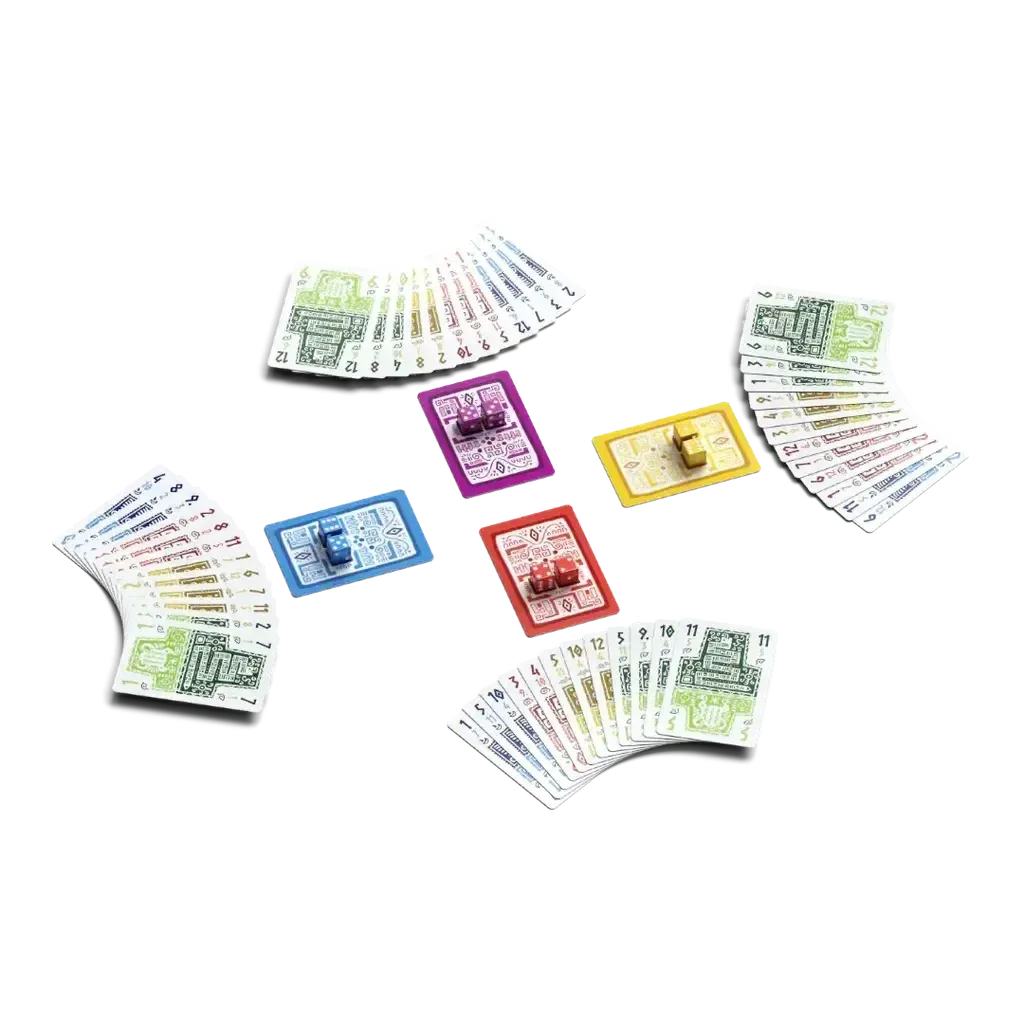 Players begin by rolling dice to determine their bids. In order to score, win the number of tricks matching your bid. First to two points wins!
