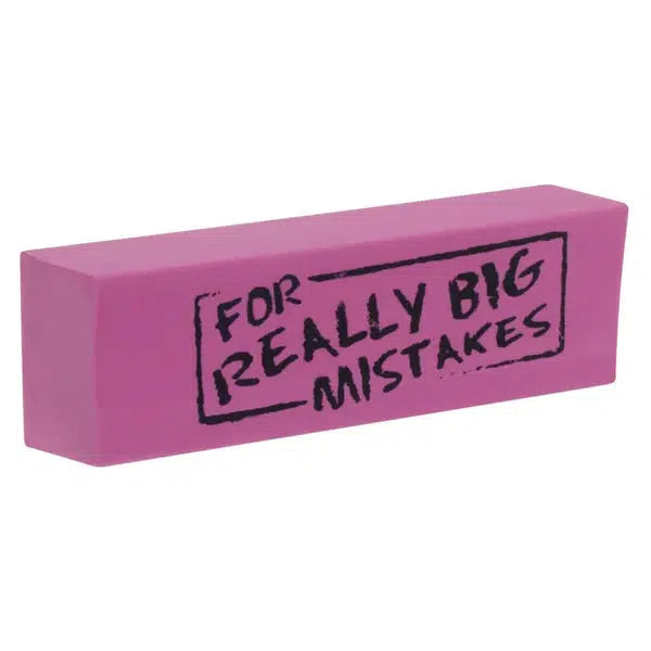 Lighten the mood with the Toysmith Really Big Eraser! Discover the perfect sarcastic remedy for your really big mistakes with this oversized pink easer! This 5.5-inch long solid pink eraser is the perfect gag gift and really works. Great for display around the office, classroom, or dorm, this funny item lightens any sour mood. Use it to clean up your actual pencil-written mistakes.